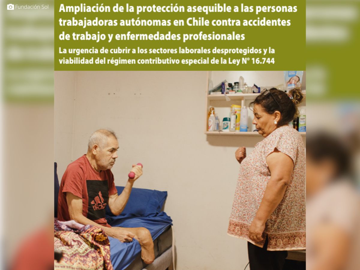 “Ampliación de la protección asequible a las personas trabajadoras autónomas en Chile contra accidentes de trabajo y enfermedades profesionales. La urgencia de cubrir a los sectores laborales desprotegidos y la viabilidad del régimen contributivo especial de la Ley N° 16.744”, es un estudio de la Fundación Sol realizado en el marco de la discusión en el Congreso sobre la creación de un régimen especial de contribución a personas con trabajos desregulados para que puedan acceder a un seguro de protección por accidentes y enfermedades profesionales.
