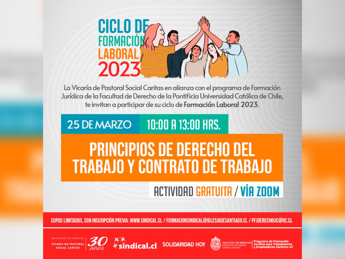 Alianza entre la Vicaría de Pastoral Social Caritas y el Programa de Formación Jurídica para Trabajadores y Empleadores de la Facultad de Derecho UC, con miras a colaborar con el fortalecimiento de la asociación y el liderazgo en el mundo del trabajo, inspirados en la Doctrina Social de la Iglesia.