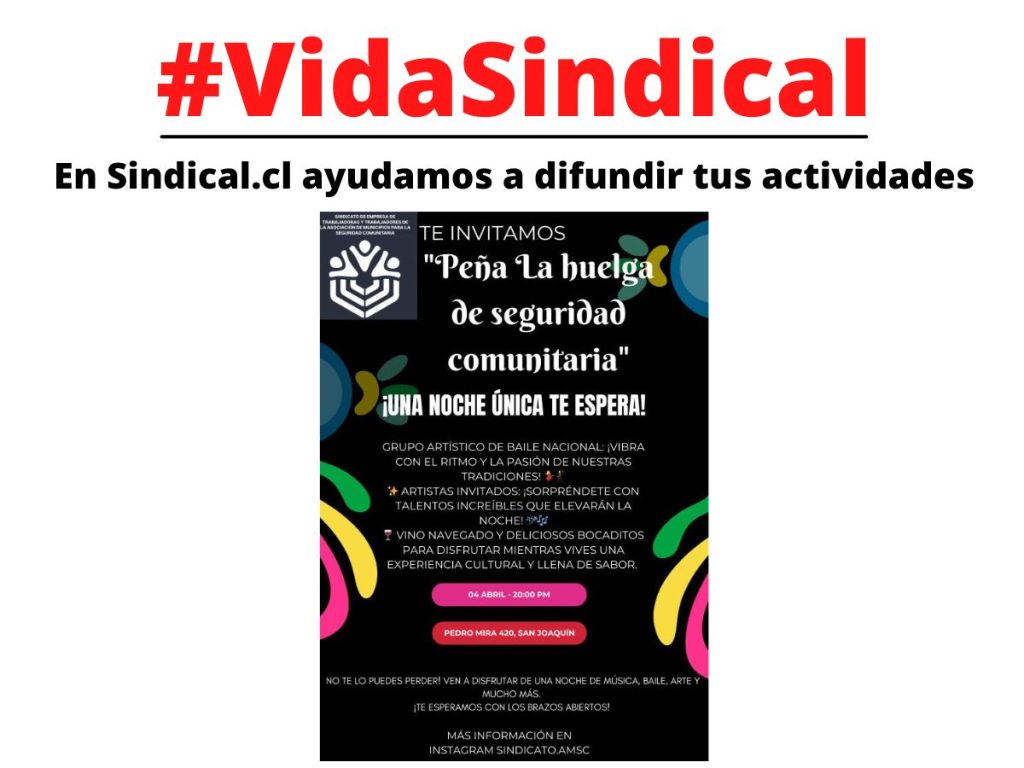 Recuerda que puedes enviarnos las actividades de tu sindicato para que difundamos en Sindical.cl: