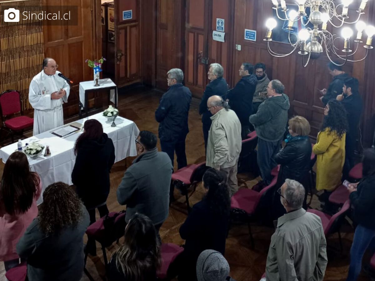 [21 de agosto 2023] La homilía, organizada por la VPS y dirigida por el vicario de dicha institución, dio inicio a la semana de actividades enmarcadas en el 35° aniversario de la CUT y estuvo centrada en la valoración del trabajo que se hace en las escrituras. “Como trabajadores hemos tenido una relación histórica con la Iglesia y con la Vicaría, así que para nosotros es muy importante iniciar de esta manera nuestra semana de actividades”, señaló el presidente de la CUT, David Acuña.